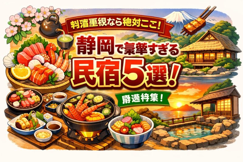 観光地としても人気の高い静岡には、海の幸に恵まれたエリアが点在し、民宿とは思えないほど贅沢な料理を提供する宿が多く存在します。